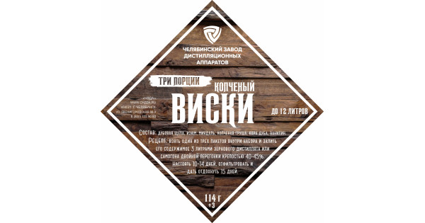 The set of herbs and spices "Spicy Whiskey" includes: coriander, cloves, sweet pepper, dried ginger, nutmeg, orange peel, chili, cardamom, vanilla, raisins.